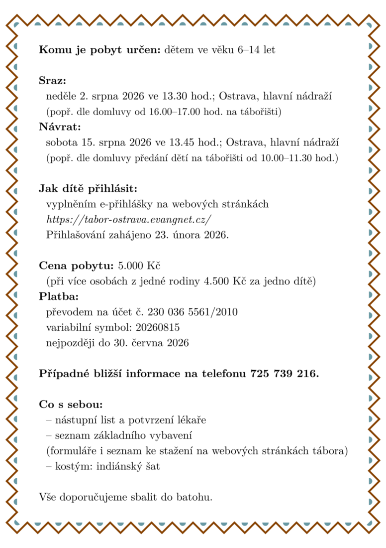 Víc informaci a příhláška na webu: tabor-ostrava.evangnet.cz